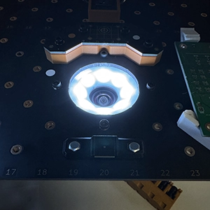 One side of the PCB is exposed, while the other side is covered by the bracket. Make sure to face the side that is exposed towards you while installing. The side covered by the bracket should be facing the Ring Light. It makes it easier to see when the nozzle tip touches the secondary fiducial during calibration.