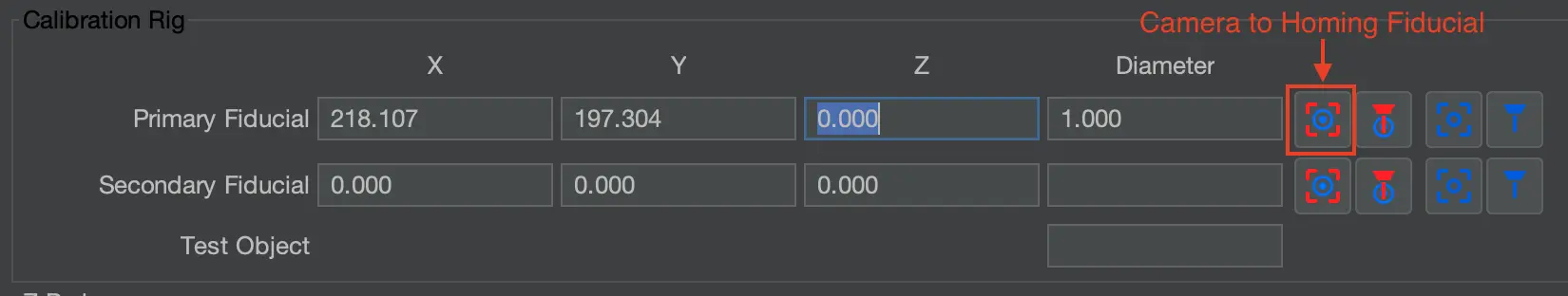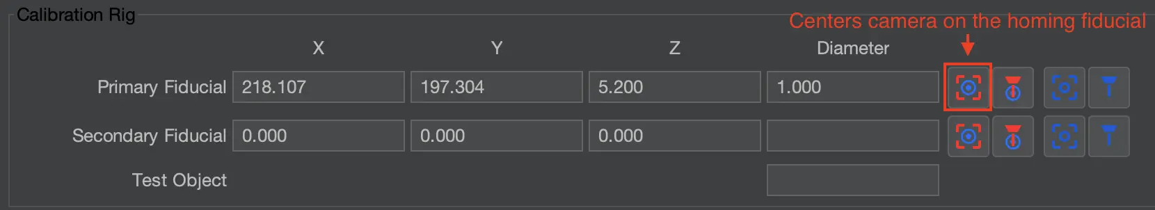 - Click the button to bring the Top Camera to the Homing Fiducial.