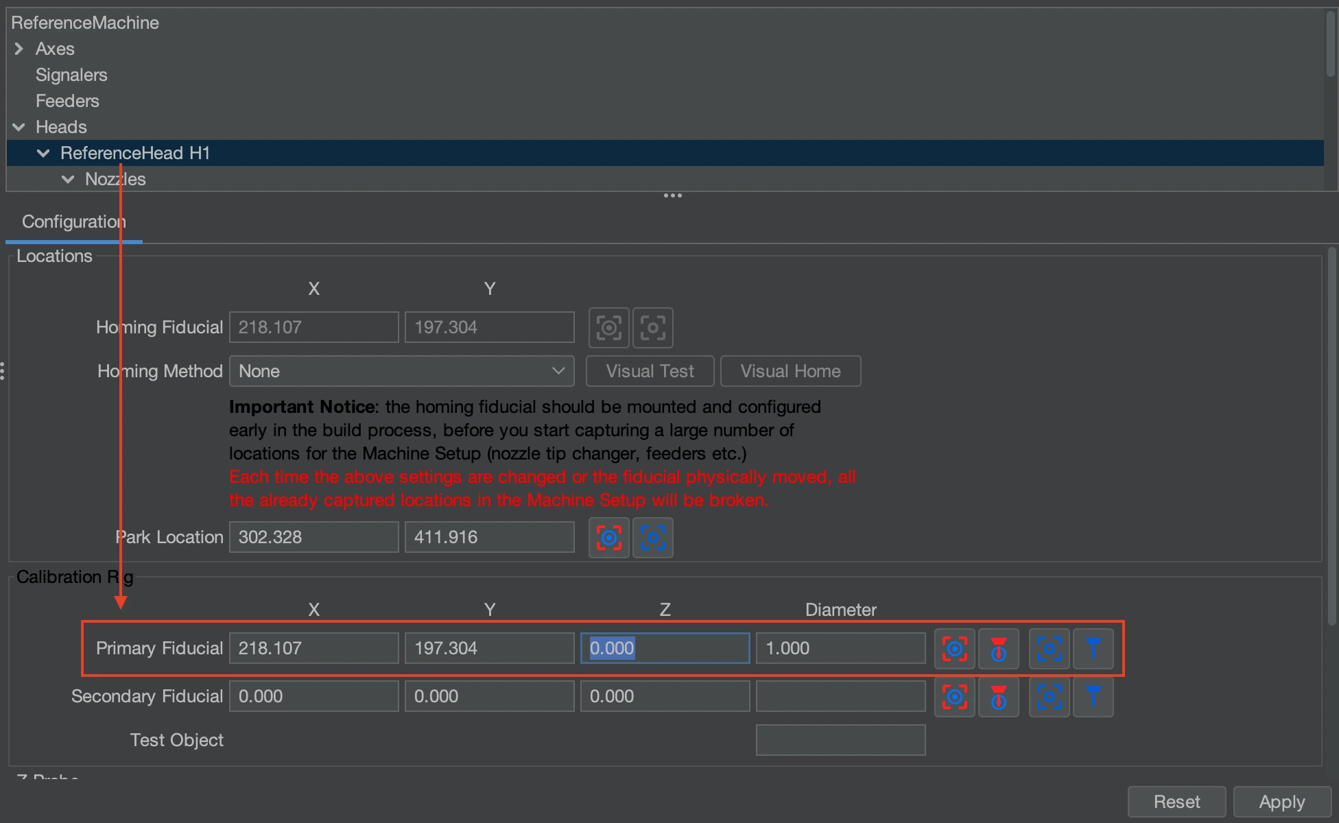Machine Setup > Heads > ReferenceHead H1 > Primary Fiducial