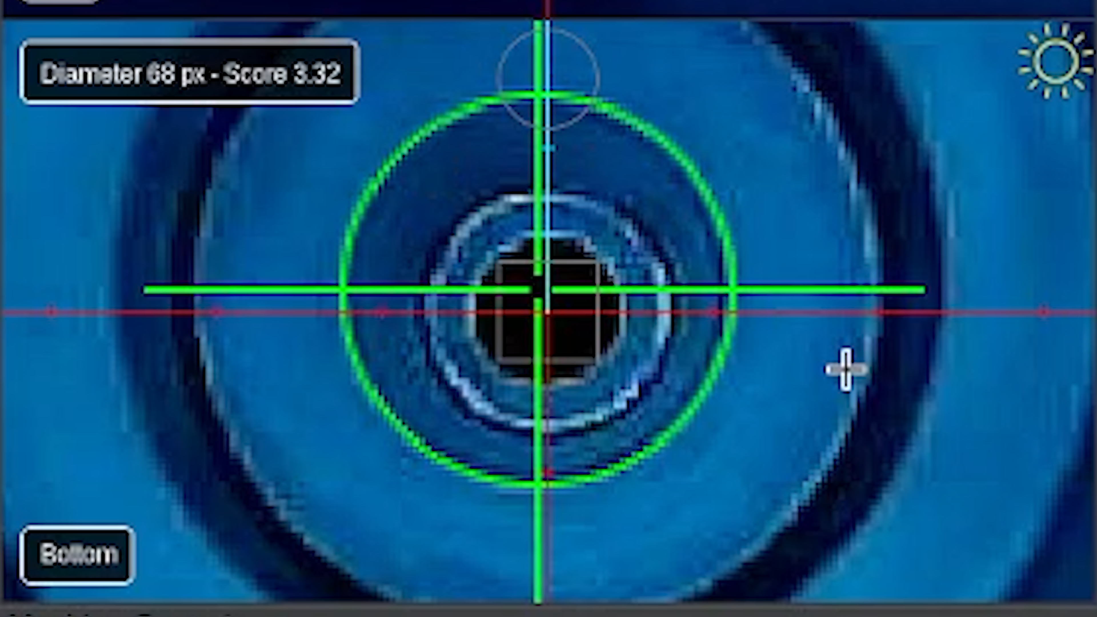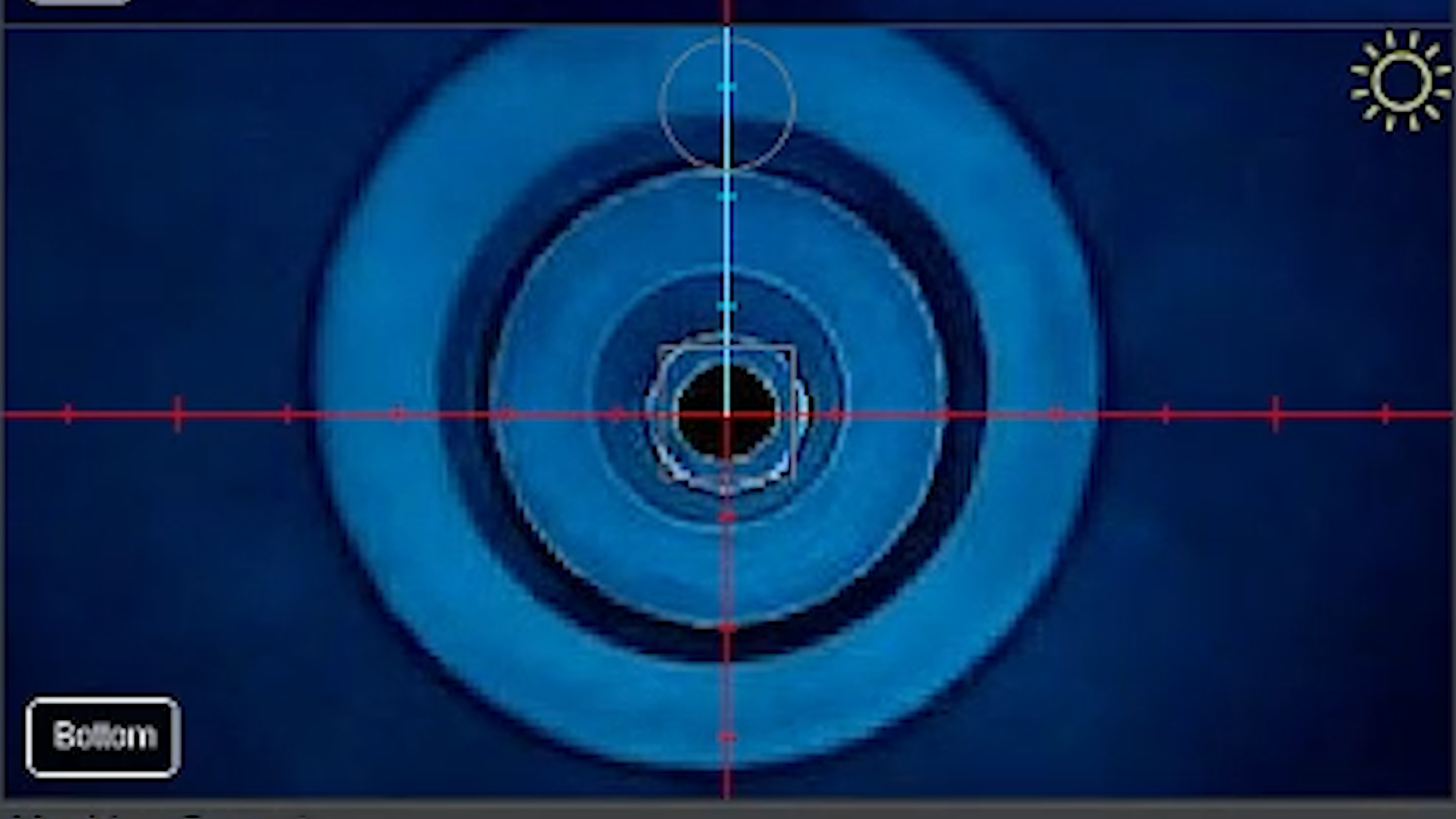As the nozzle moves away from the center, watch the detection circle to make sure the nozzle opening continues to be detected correctly.