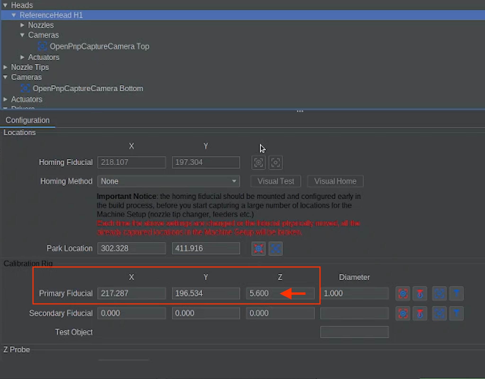 Machine Setup > Heads > ReferenceHeads H1 > Primary Fiducial Coordinates > Z