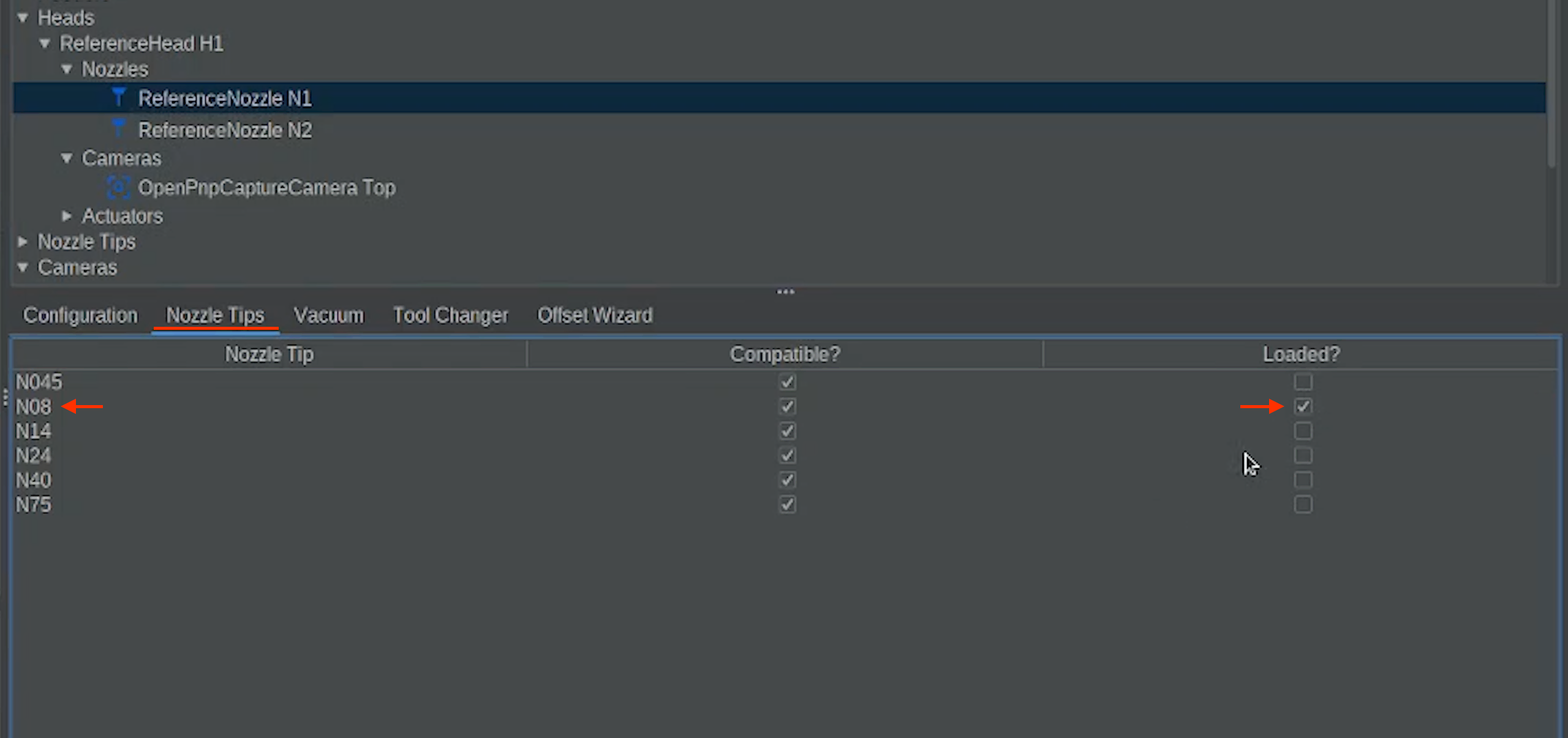 Machine Setup → Heads → ReferenceHead H1 → Nozzles → ReferenceNozzle N1 → Nozzle Tips