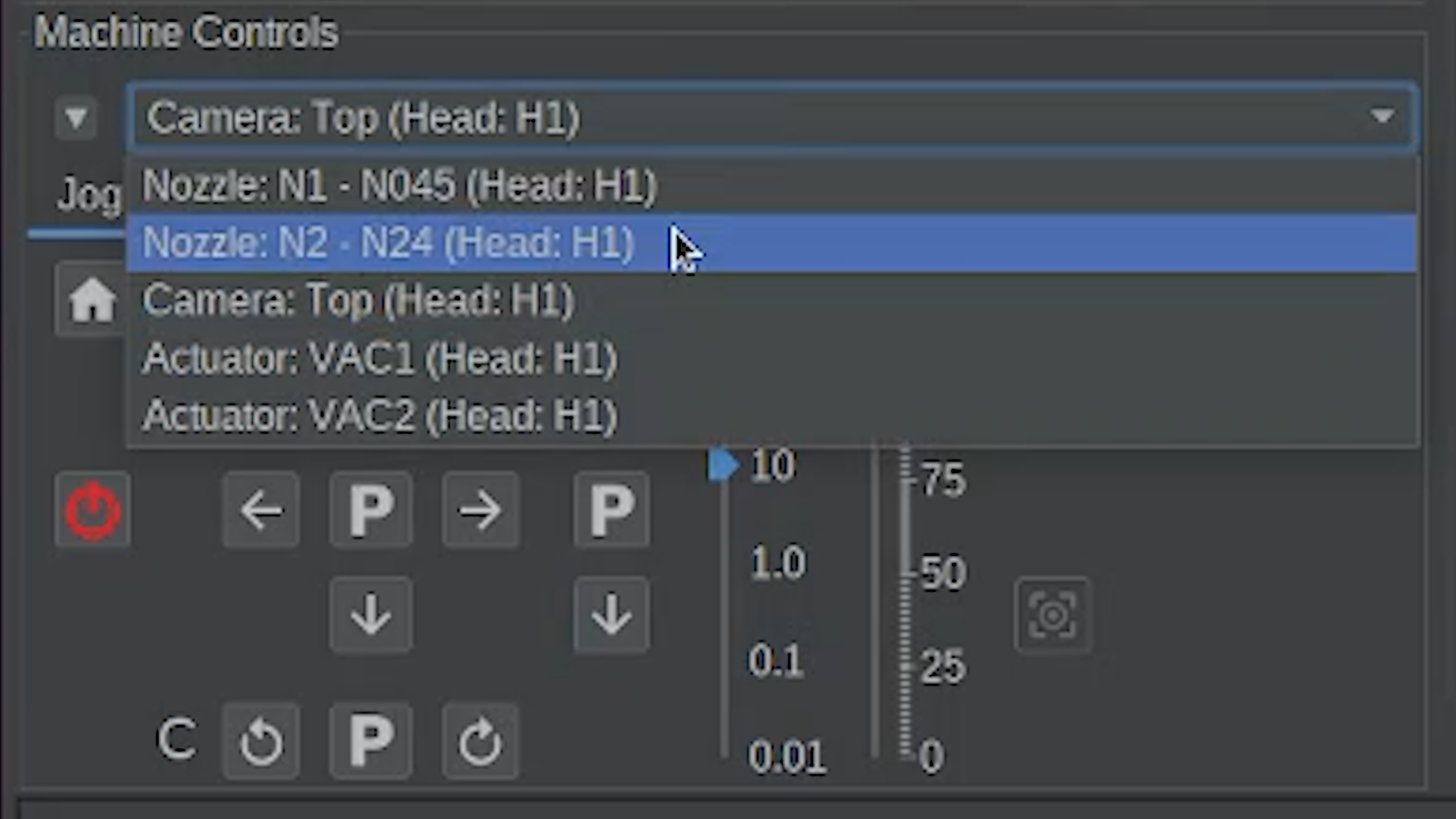 - Once selected, the jog controls will move Nozzle N2 instead of Nozzle N1.