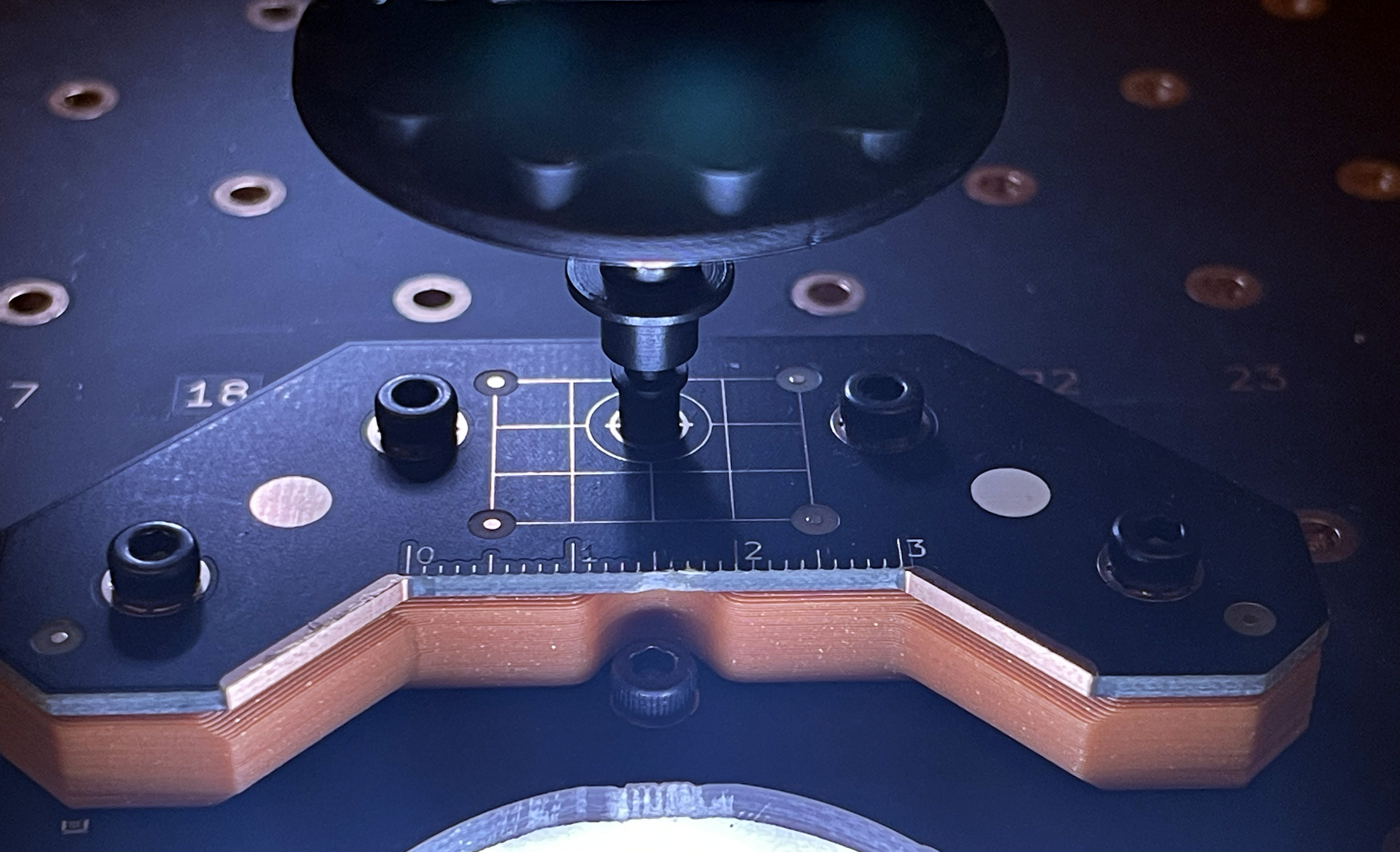 - Use the Machine Controls to jog Nozzle N2 over the primary calibration fiducial.