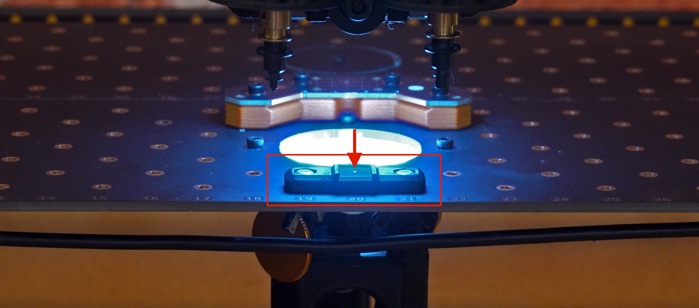 - The secondary fiducial is located near the closer side to the up facing bottom camera on the staging plate.