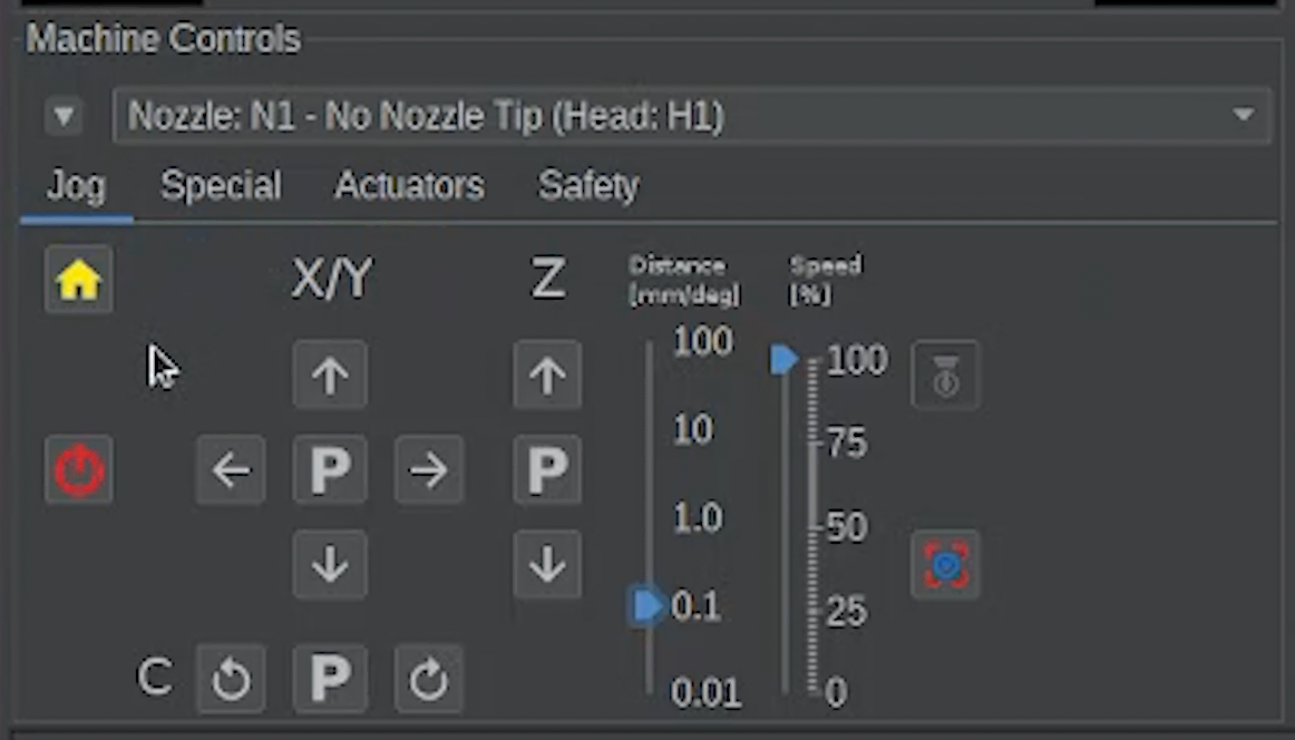 Using the Z Park button guarantees that the nozzle tip moves to a safe height.